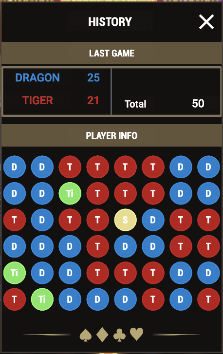 By opening from side menu GAME STATISTICS last 46 rounds statistics is displayed