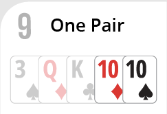 Pair - Any two cards of the same rank (two aces, two kings and etc.) If several Hands have a Pair, the Hand with the higher Pair wins. If several Hands have the same rank pair, the Hand with the higher kicker wins.