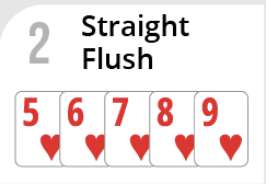 Straight Flush- Any straight with all five cards of the same suit. If several Hands have a Straight Flush, the Hand with the higher Straight Flush wins.