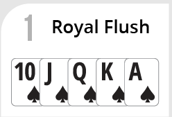 Royal Flush- A straight from Ten to Ace with all five (5) cards of the same suit. This is the strongest poker hand.
